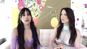 Description: Ari Alectra and Ivy Ireland are ready to get wet and messy taking turns slurping on one long lucky dick! These filthy babes love fantasizing about gagging on a fat cock and milking out every last drop of that hot load. They deepthroat with passion and purpose showing off their dedication as they choke and drool all over the shaft. And when the cum finally hits They share it like good little sluts swapping and swallowing every drop with a smile.