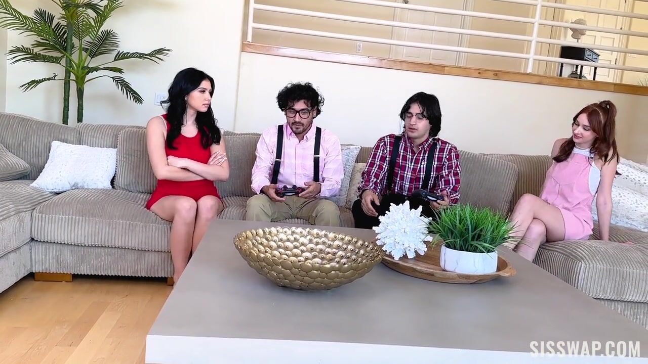 Description: Its Valentines Day and Elias and Rico are again left without Valentine s sweethearts. These nerdy dudes are never going to get laid if they dont start making an active effort to put themselves out there. Luckily their stepsisters Bailey and Melanie want to help the guys and ensure they dont spend another Valentines Day alone. The girls start by giving their stepbrothers a makeover and putting them in some more appealing clothes. They then decide maybe its time for their stepbrothers to have kissing lessons. Elias isnt so sure but Rico encourages the lesson knowing that this chance wont come up again any time soon. Rico and Elias cant believe theyre making out with each others stepsisters. Could this be a dream come true The girls are pretty turned on themselves and despite Rico and Elias being total dorks they are pretty cute and theyre fast learners too. To really show their commitment to helping Elias and Rico Bailey and Melanie set the guys up with dates. But the dates end with no kiss which the girls were half suspecting. They dont want their stepbros to be upset with the results of the date so Bailey and Melanie once again offer themselves up to the guys. This time however Melanie wants to take things all the way. She doesnt want the guys to be virgins forever and if Bailey is cool with it Melanie suggests a sis swap Bailey will have sex with Elias and Melanie will have sex with Rico. It sounds ridiculous at first. Were Bailey and Melanie really about to fuck in front of their own stepbrothers But the more the thought crept into their minds the hornier they got. It would easily be the most taboo thing theyd ever do and who knows maybe their stepbrothers had big cocks. So they go along with their plan but neither Melanie nor Bailey can take their eyes off of their own stepbrother. Even while getting fucked they make eye contact and think about how wild it would be to get fucked by their own step family. The desire becomes too much to resist so they switch again so that Elias and Rico are now fucking their stepsisters. Everyone knows how fucked up the situation is but they also feel incredible. All the pent up sexual energy since their kissing lessons are released in full force and that only makes everyone in the room even hornier. When the guys can no longer hold their loads they bust their nuts on their stepsisters faces who then share a cum glazed Valentines Day kiss.