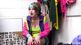 Description: It s spirit week at school and Octavia rarely gets the chance to participate in any of her school events. She never had money to participate but this time she really wants to be a part of it at any cost. In a poor attempt to find herself the right attire she goes into the costume store at the mall and tries to steal an 80s themed outfit but she comes up with the worst way of stealing it pretending she walked in with it on. This triggers all the alarms and makes Officer Hardy catch her instantly. Taken back for questioning Octavia tries to play dumb but the security guard is onto her. He must pat her down and ensure that no other stolen items are hidden under her clothes. Soon Octavia comes clean and explains the whole situation to Officer Hardy. Trying to be supportive Calvin lets her go with a horny warning she can leave but first shell have to give the good officer a nice ride on her tight pussy.