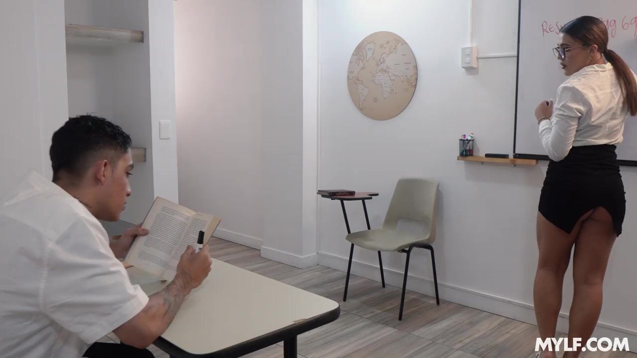 Description: Tommy is having some trouble focusing in school. Hes constantly anxious about his tests and is worried his focus will cause his grades to drop. Luckily for him his teacher Kloe is full of surprises and she knows how to help guys with their focus. Her methods are a little unorthodox but what else would you expect from a stunning Latina milf Her loca idea is to get Tommy to cum because if he can get his mind off of blowing a load hell be more well equipped to focus in class. The mamacita gets right to sucking Tommys cock instructing him to lie on his back while she puts her mouth to work. Her plan is working like a charm and Tommy can already feel his focus improving. He pumps his hot teachers pussy full of cock letting his shaft slide in between her dripping wet lips. She rides Tommy and plays with her magnificent tits enjoying her lesson just as must as Tommy. When he can no longer hold his load Tommy cums in Kloes mouth filling it up with a hot sticky mess.