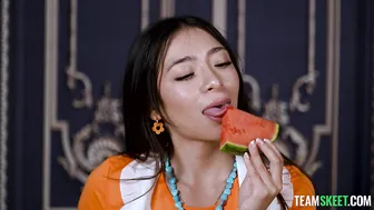 Description: Amber Summer doesn t take being the TeamSkeet All Star of the month lightly. Can you imagine how good her tongue split would feel running around your hard cock If you want her to get a taste of your cum you ll have to take her on a date first. She loves sushi dinners sleeping with fans and tempting her date with everything she can put in her mouth until he s ready for some hardcore missionary right on the restaurant table.