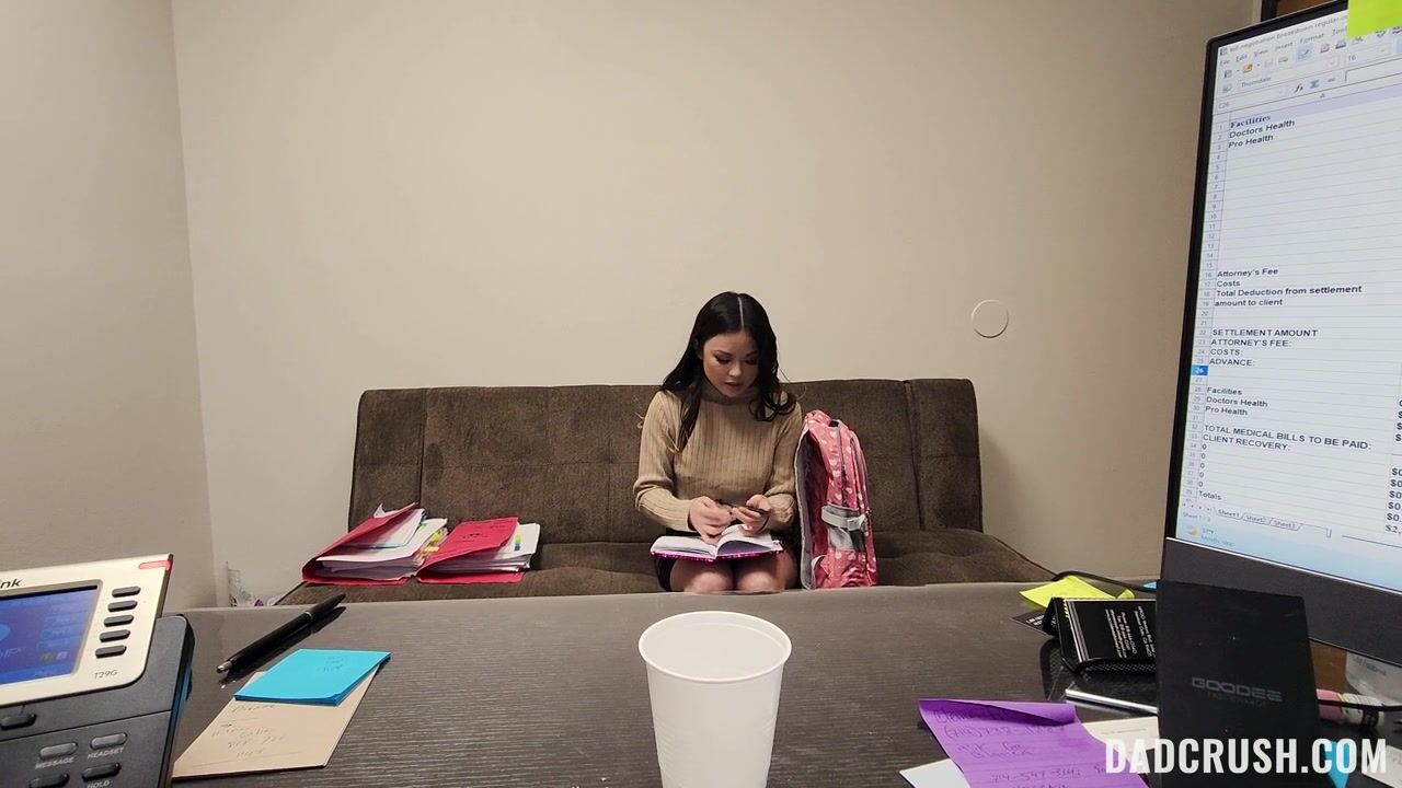Description: For her big college assignment Lulu needs to observe her stepdad Allen while he works. She wants to get into the mind of an executive but his pesky intern Violet keeps getting in the way. Later in the breakroom Violet shows Lulu that they can have a little fun too and licks cookie crumbs off her lips. Allen sees this so Violet exits the room and Lulu uses this opportunity to suck her stepdads cock. The next day Violet is up to her usual antics trying to get Allens attention although she wants Lulu to join in this time. They share an intense threesome right there in the office. Allen fucks Lulu until he busts a load inside of her.