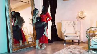 Description: Veronica Rodriguez s interest in tango dancing has led her to buy a new dress and hire a renown instructor Missy Martinez. Missy shows up to her lesson with the daughter of the ambassador of Venezuela in a stunning red dress that does her big boobs plent