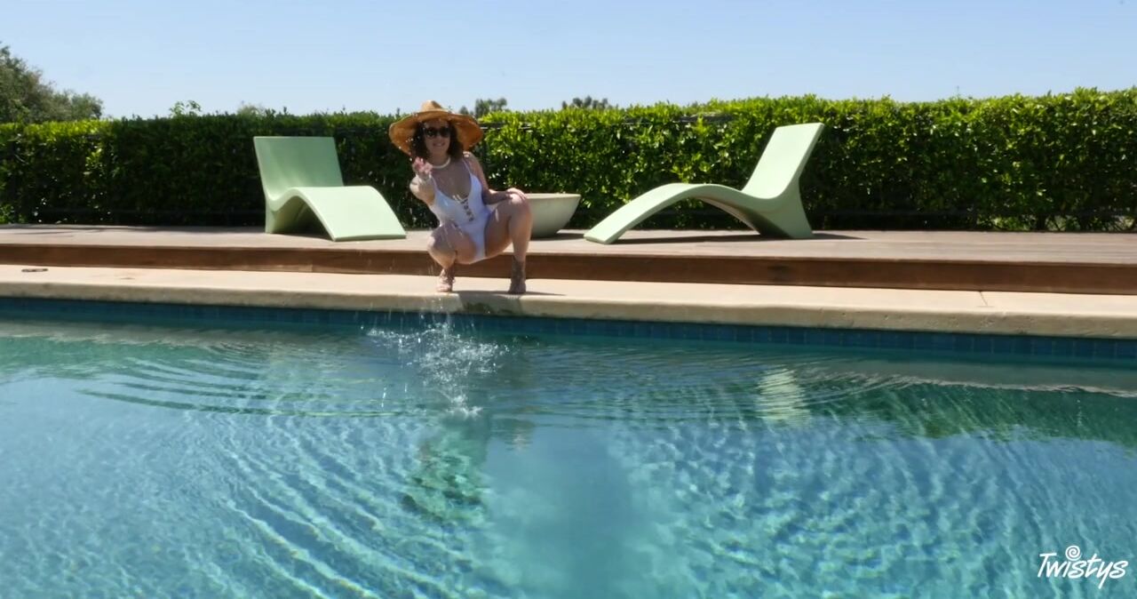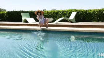Description: The sun is shining but no star shines brighter than sweetheart Jenna Sativa as she enjoys herself by the pool. Wearing a sleek white one piece the adorable brunette explores her fun side flirting with the idea of getting into the water but decides to