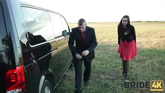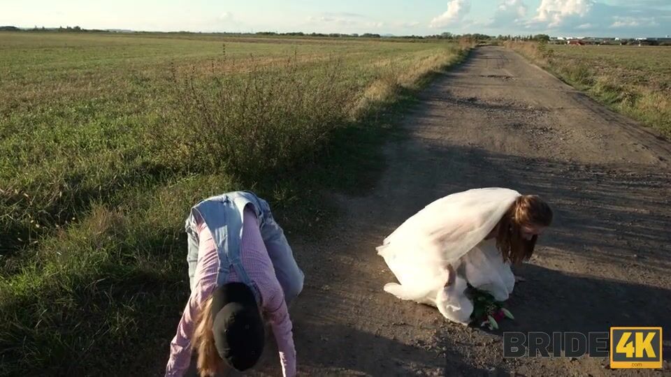 Description: Anything can happen in the second before the wedding! For example this bride suddenly realized that her entire rich life has been timetabled just not by her but by someone else. Someone else wants this wedding someone else wants her to wear the ring someone else is planning to buy a house with four bedrooms two kids rooms and a doghouse in the backyard. The thoughts started such a whirlwind that the bride fled. What luck that she found refuge in the warm van of two lusty but very helpful laborers!
